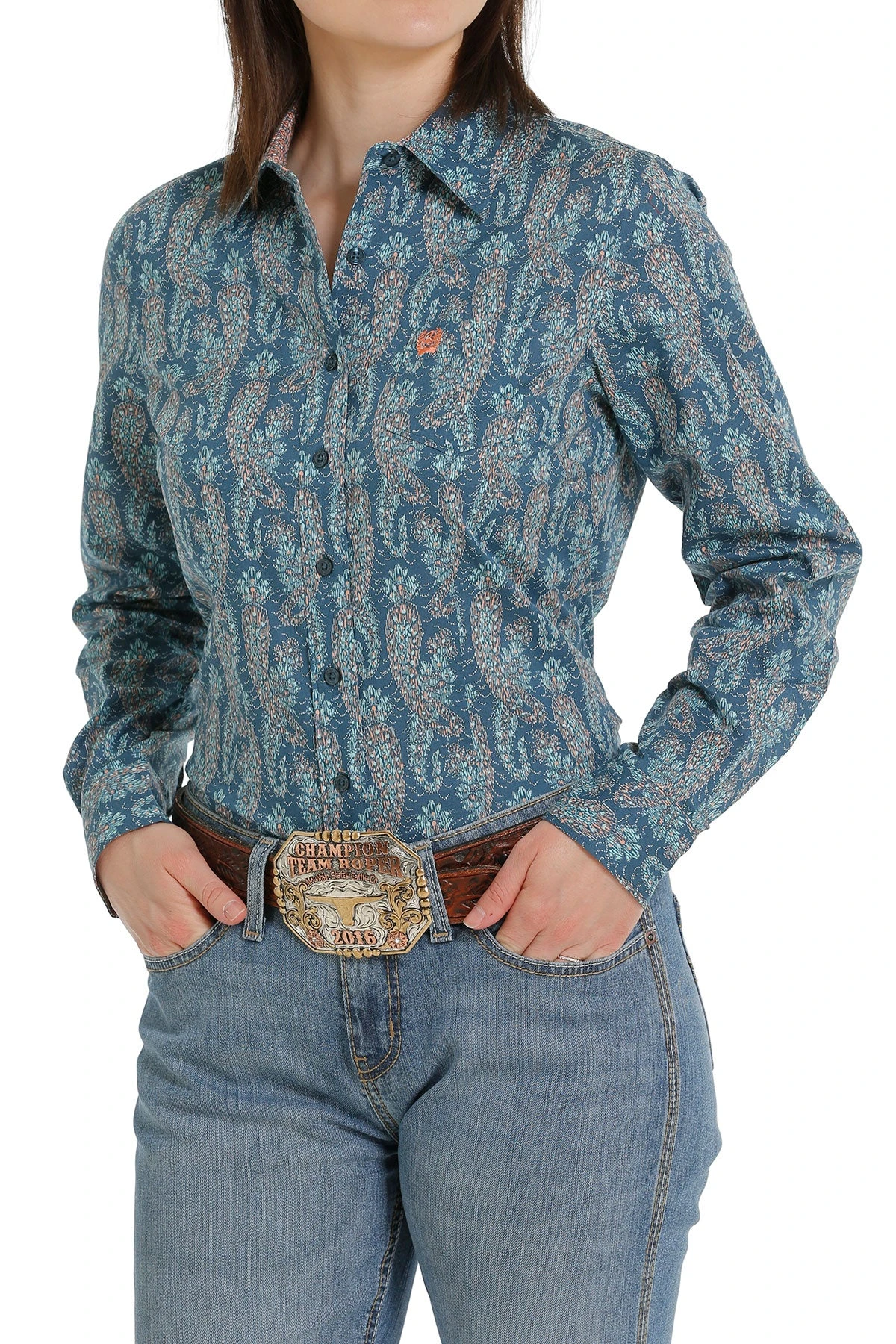 Stand out with style at the arena or evening out on the town with this tailored feminine fit long sleeve button-down shirt.