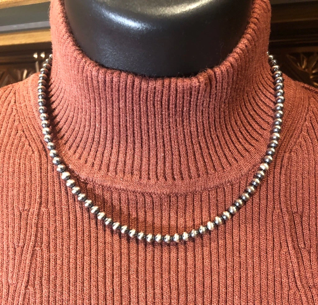 Sterling Silver Navajo Pearl Necklace | 16” length, 5mm Beads | Hand Beaded | Local Kansas Artist