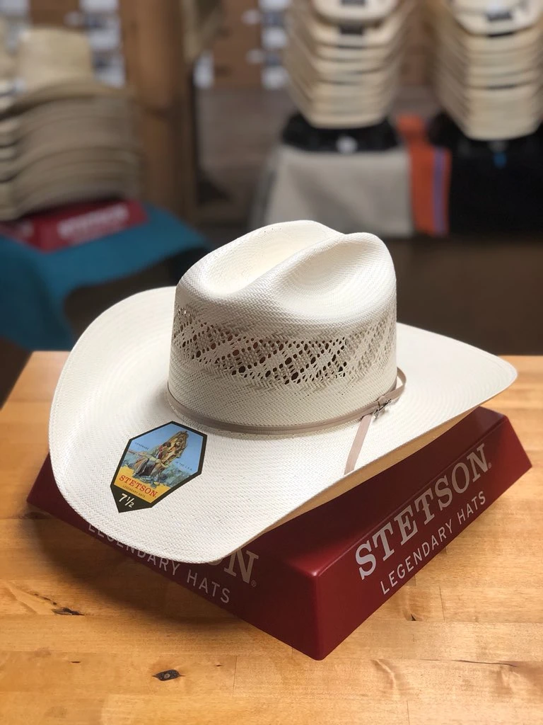 Stetson Thunder Straw Cowboy Hat | Crown: Low Cattleman | Brim: 4 1/4″, Medium Curved | Regular Oval | Dri-Lex Sweat Band |